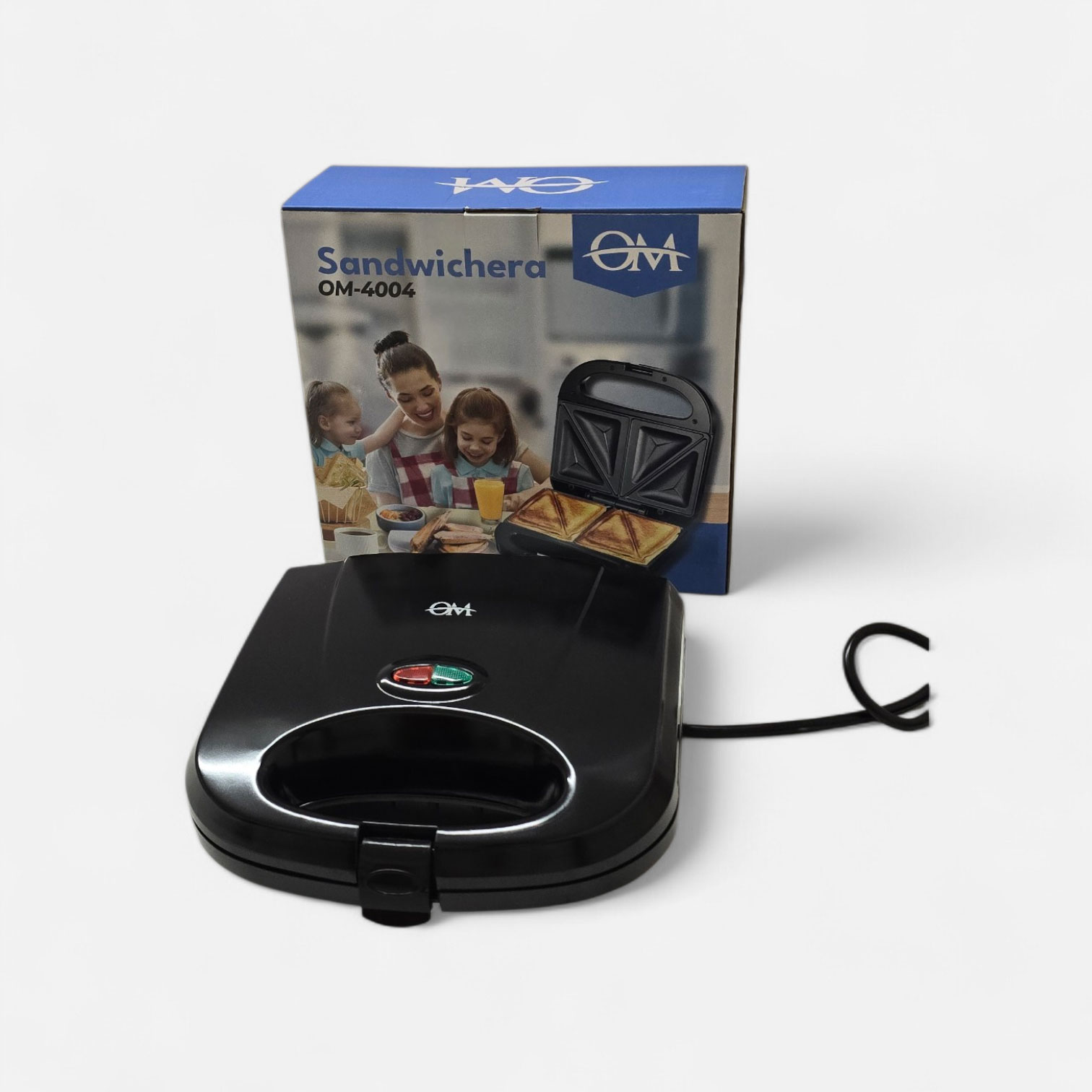 Sandwichera eléctrica para preparación rápida de alimentos calientes.